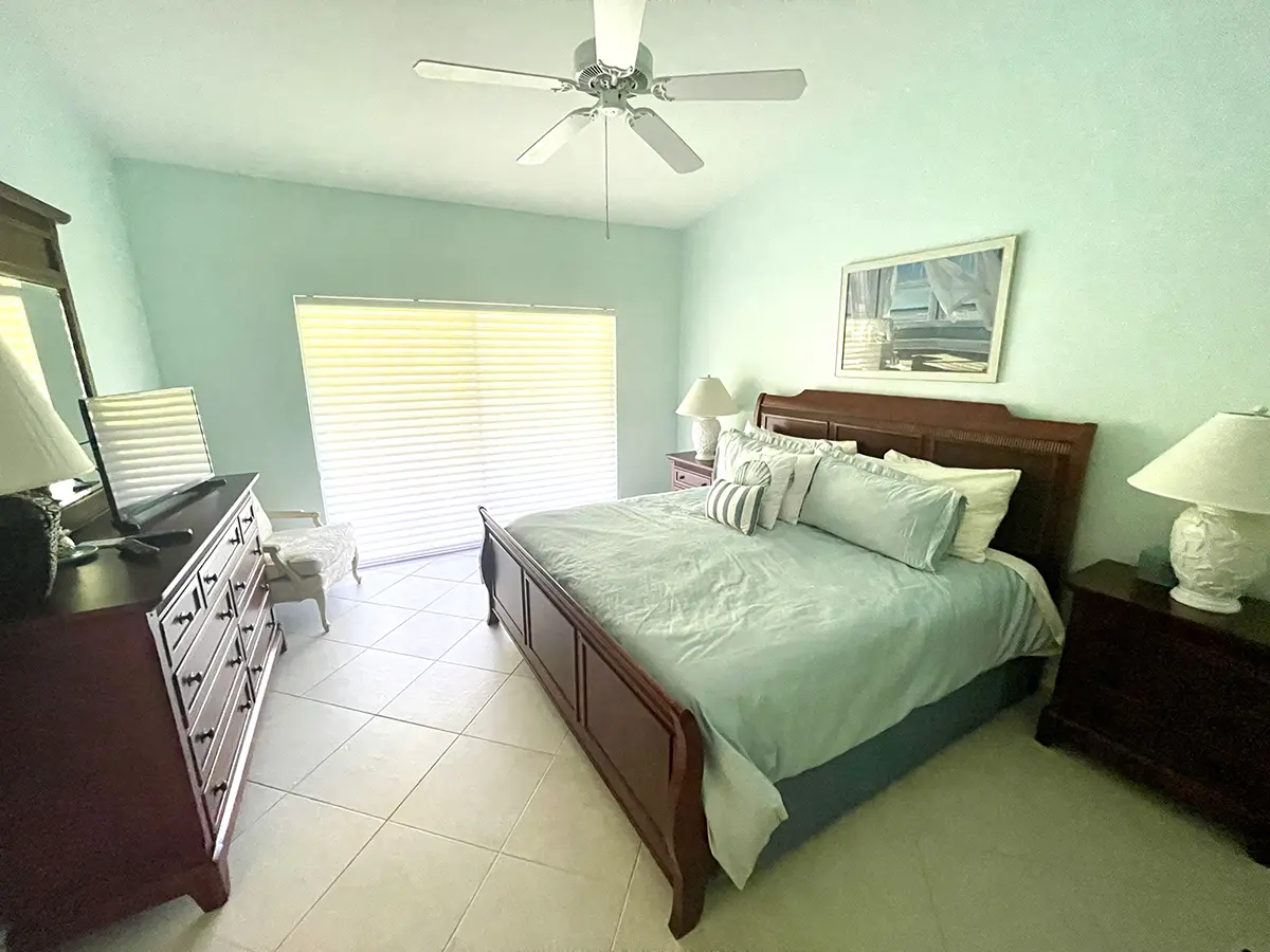 The master suite has a queen bed, en-suite bath, walk-in closet, and lanai access; the guest room has two twin beds. Open-concept living and a fully equipped kitchen make it perfect for relaxing with family or friends.