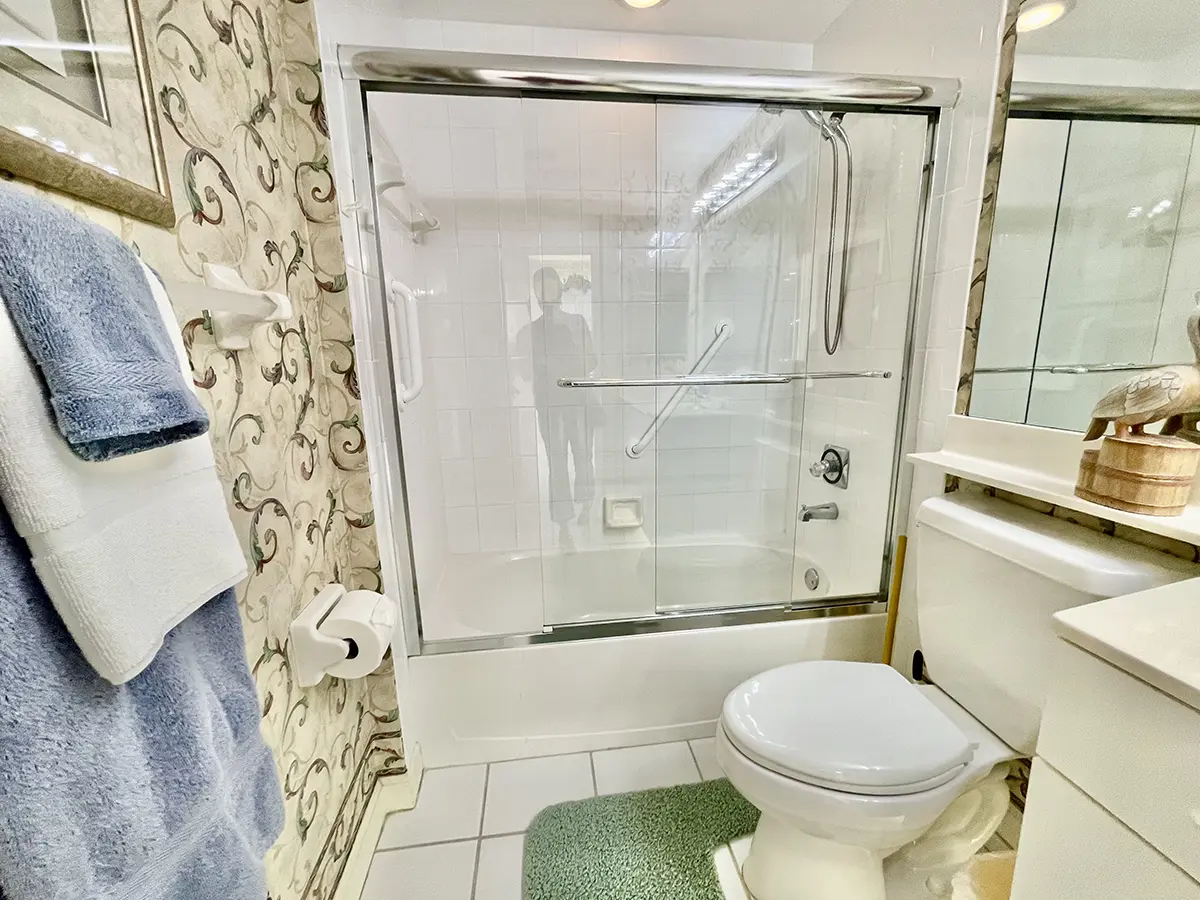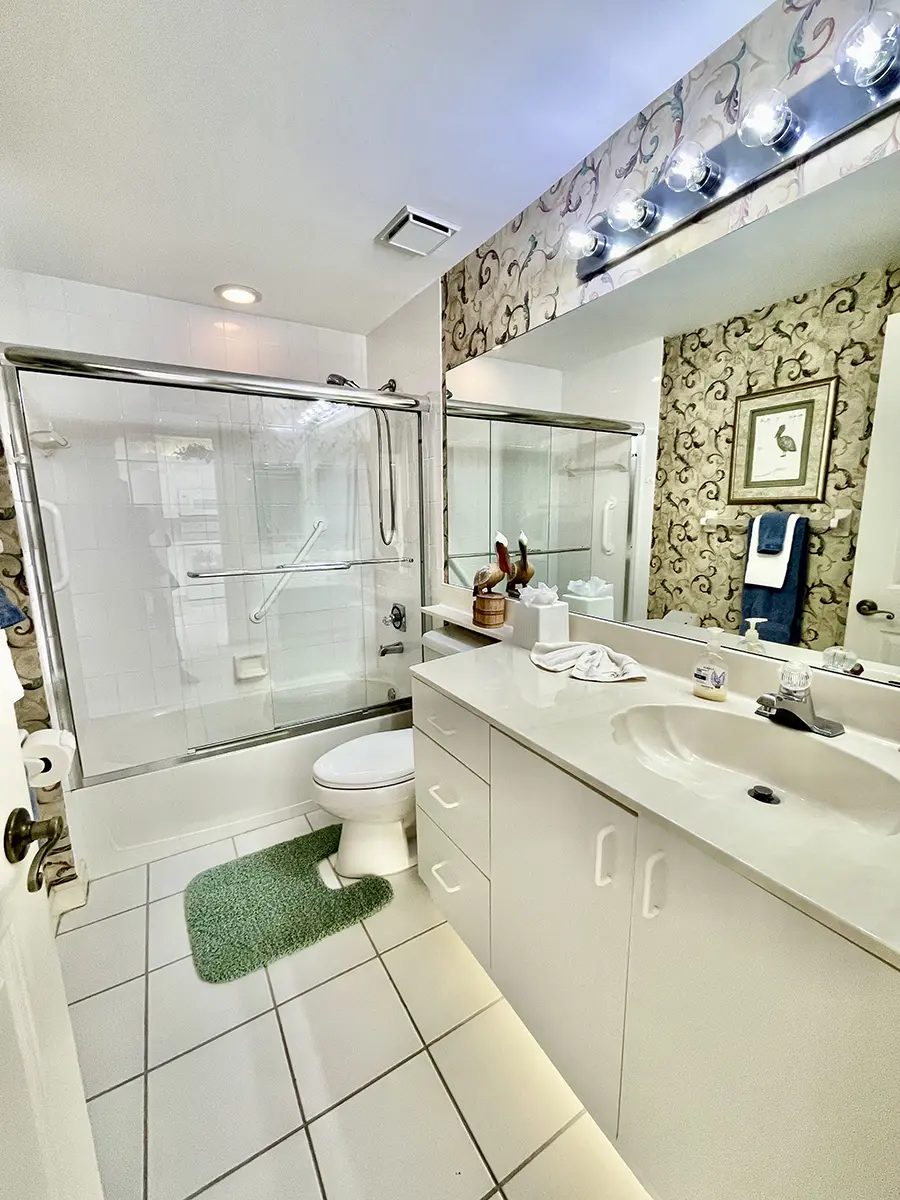 The primary suite offers a king-size bed and private en-suite bath, while the guest bedroom features a queen-size bed and adjacent bathroom — ideal for two couples or visiting friends.