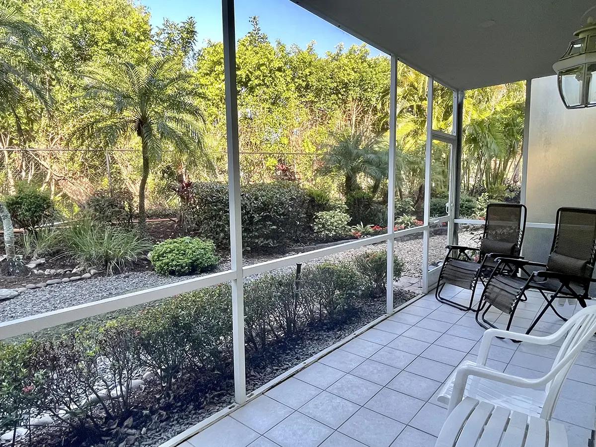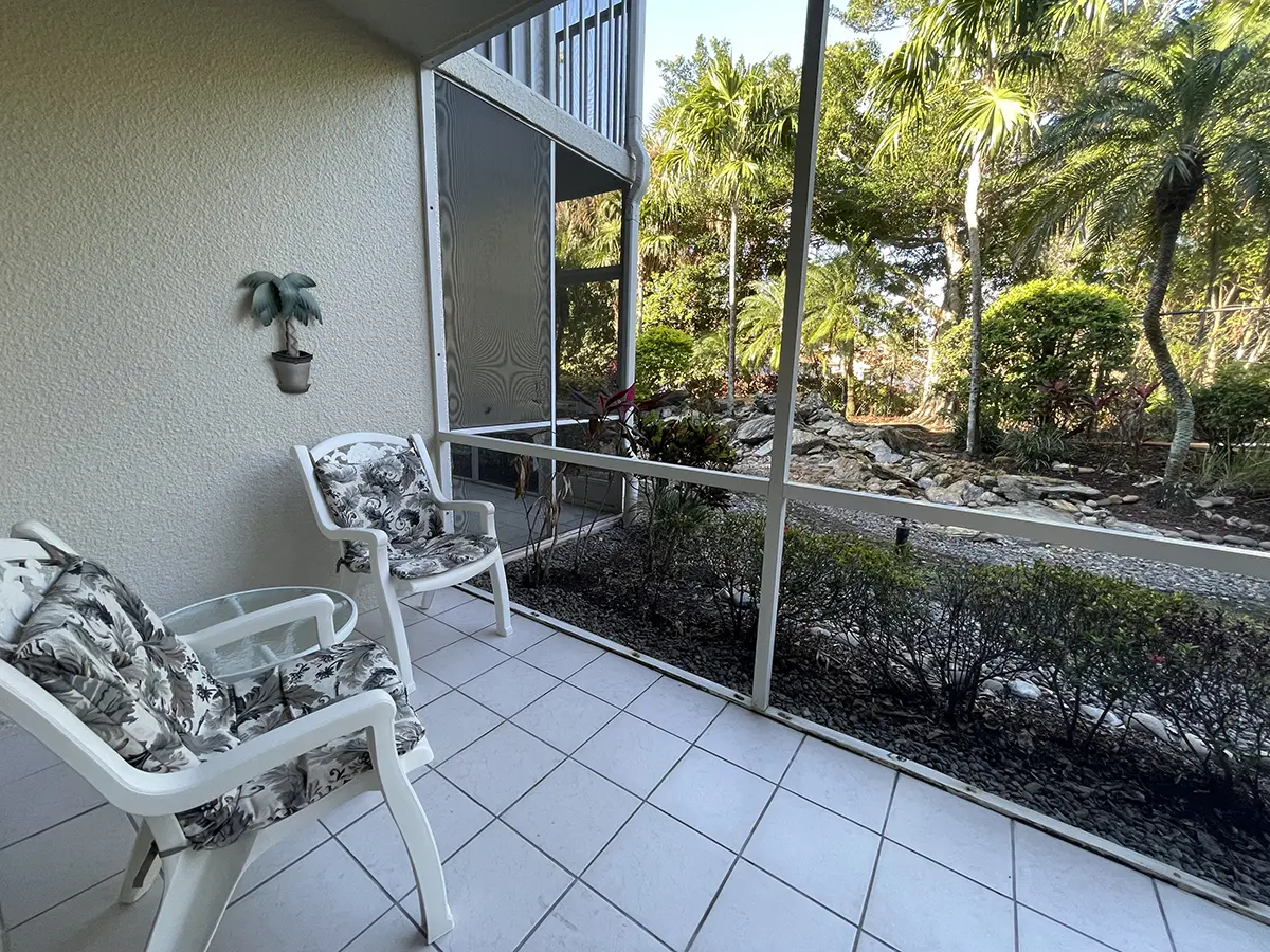 Arrive and instantly feel on vacation: This cozy ground-floor condo in the Jasmine Court Association at Falling Waters Central features a bright, inviting living space and two screened lanais overlooking a quiet preserve — perfect for relaxed mornings with coffee or warm Florida evenings outdoors. The impressive resort-style pool — one of the largest in Southwest Florida — along with the clubhouse, is just a short stroll away, creating true resort-style living.