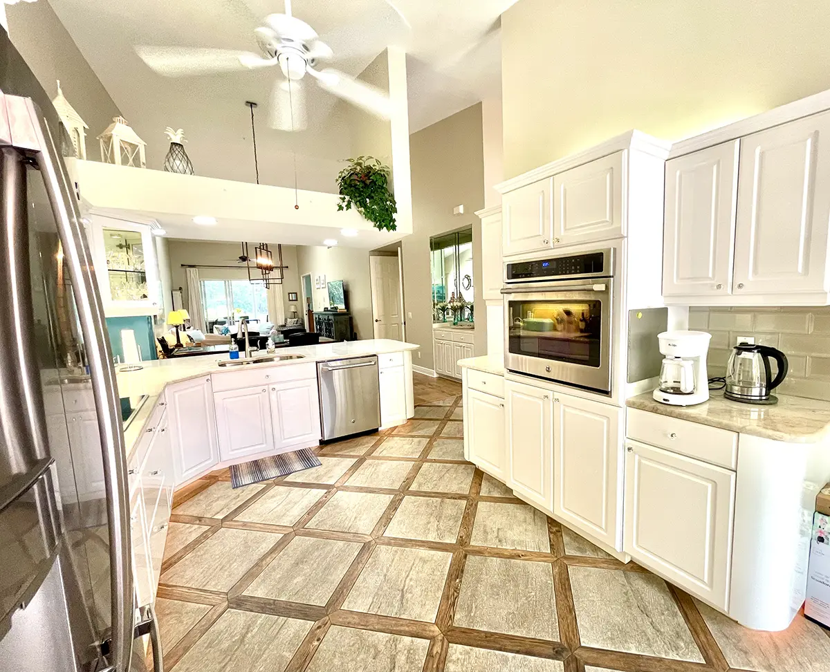Live a life of luxury in your own private villa! Located in Magnolia Cove of the desirable Falling Waters location in East Naples, this beautiful villa offers plenty of room to entertain and stay for up to six guests. The master suite has a king-sized bed, luxurious en-suite bathroom, and a private entrance to the screened sunroom lanai overlooking a private lake view. The second guest bedroom has a queen-sized bed, and the third bedroom has a pair of twin beds with their own flat-screen TV. Enjoy your own private courtyard patio, or slip into the bright morning room through wide sliding glass doors. A massive modern kitchen with stainless steel appliances allows you to make homemade meals from scratch any time of day. A garage is available for guests to keep your car cool during the hot summer months.