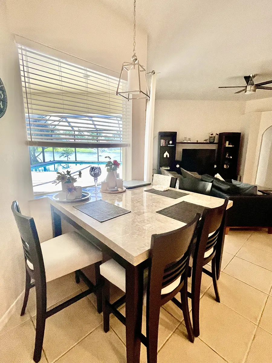 Welcome to your private pool villa in the exclusive gated community of Moon Lake, just minutes from 5th Avenue South and the beautiful beaches of Naples. This spacious home features four bedrooms with king-size beds, perfect for adults or families, and bright, airy living areas with vaulted ceilings and stylish Florida décor.