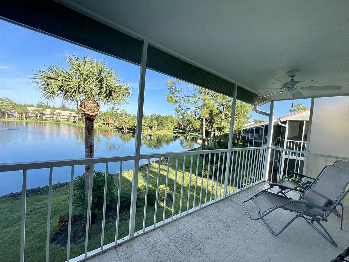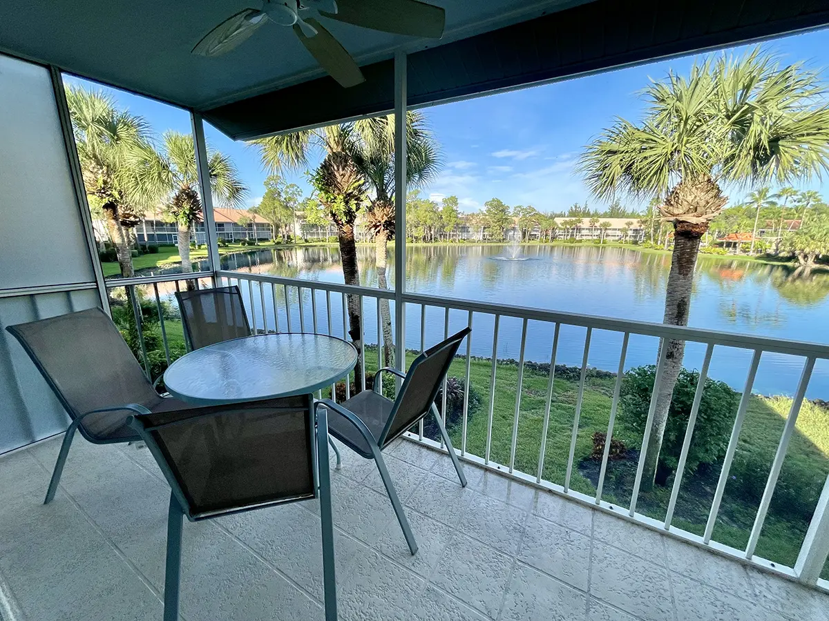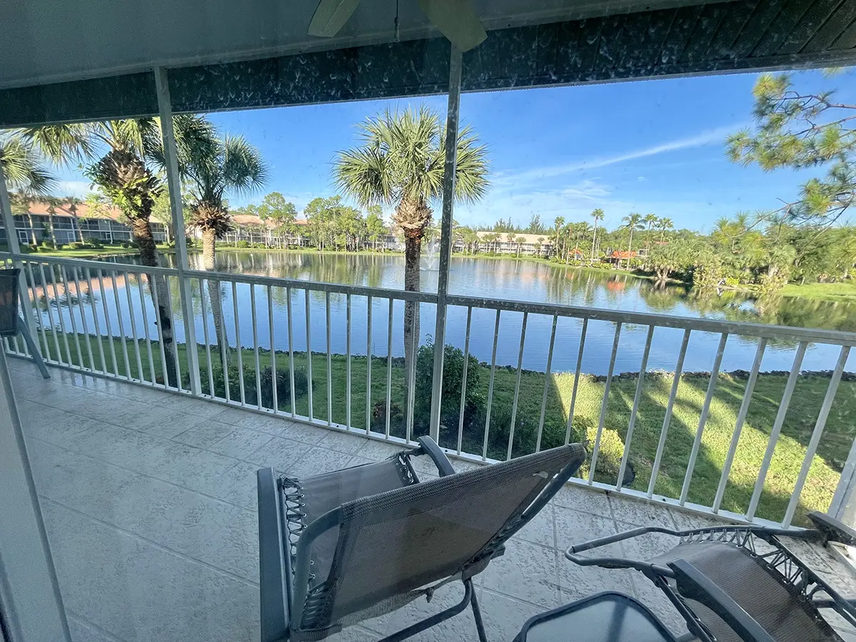 Experience modern comfort and cozy Florida vibes in this bright second-floor condo in Orchid Falls, part of the exclusive Falling Waters Central Community. Two screened lanais offer relaxing outdoor spaces: the rear lanai overlooks the sparkling lake and resort-style pool, perfect for afternoon lounging and breathtaking sunsets. The front lanai opens to a peaceful courtyard, ideal for morning coffee or a relaxed breakfast in tropical surroundings.