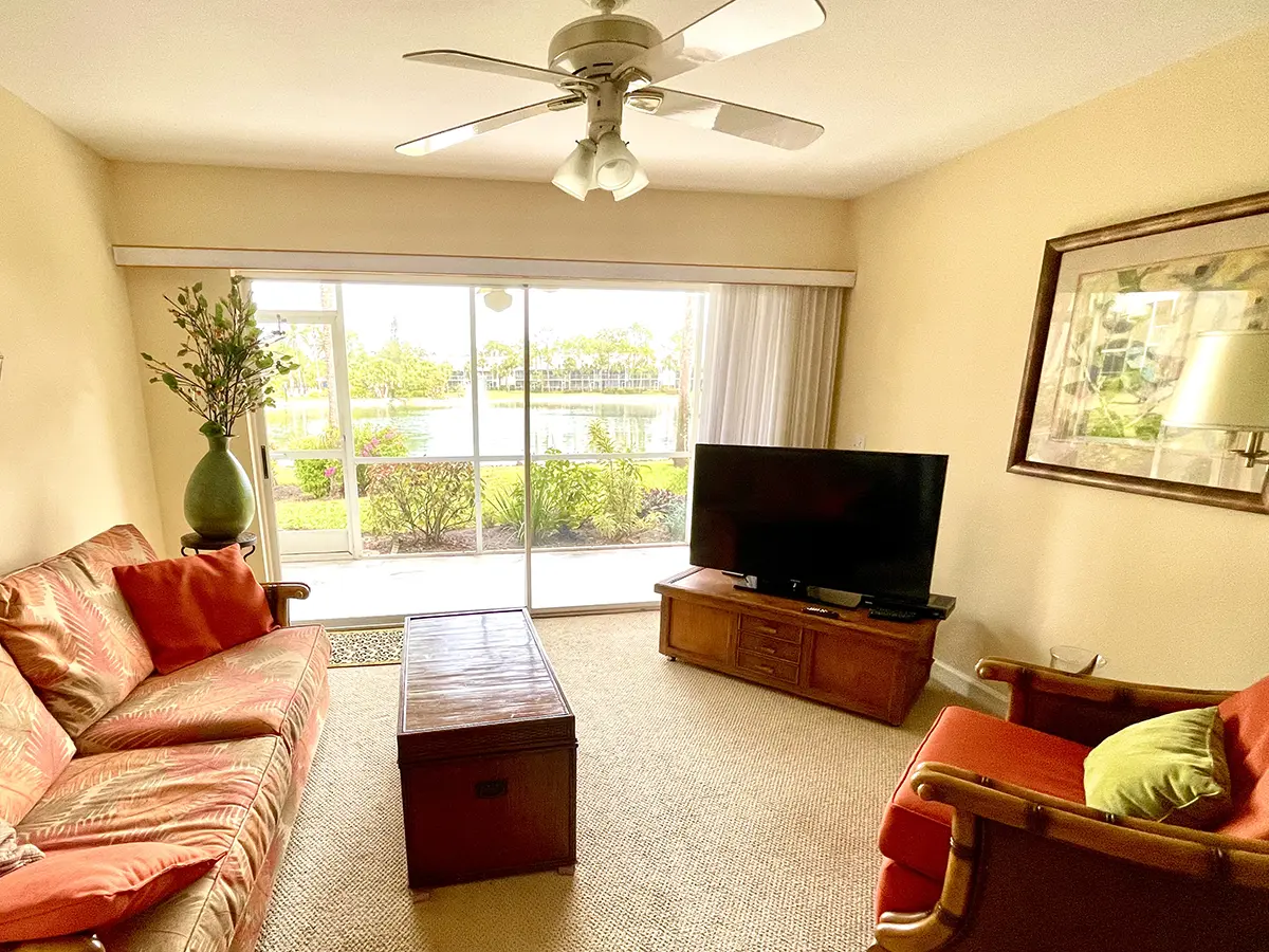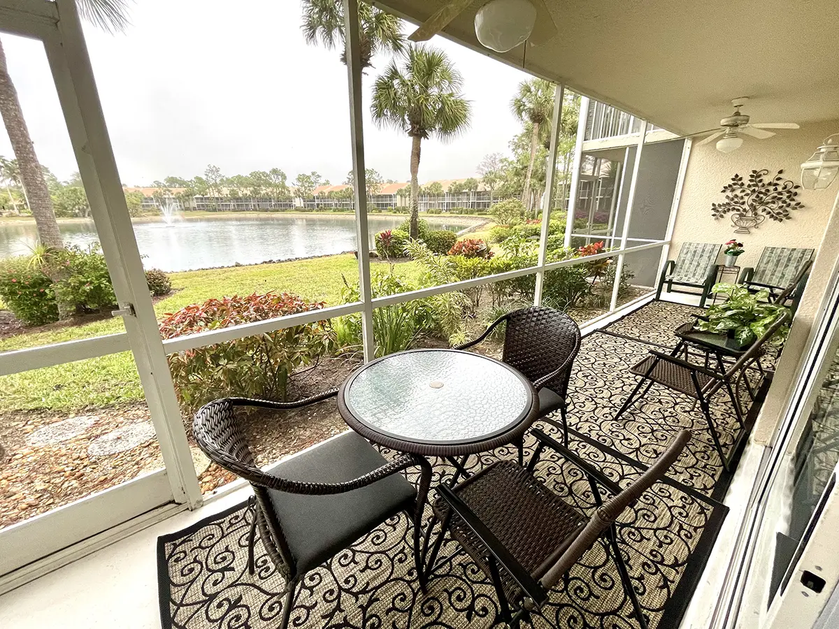 Welcome to your cozy getaway! Located in the desirable Orchid Falls association in Falling Waters, in the heart of East Naples, this ground-floor condo is only minutes of walking away from one of the largest resort-style pools in Florida. Amenities also include tennis courts, a clubhouse with library, and walking and biking paths surrounded by tropical vegetation. The master suite features a queen-sized bed with en suite bathroom and sliding glass doors to the screened north-facing lanai facing a serene lake view with palm trees and fountains. Relax in the spacious living room with cable TV, or explore everything that Naples has to offer only minutes away via car, including beaches, dining, shopping, golf, and more!