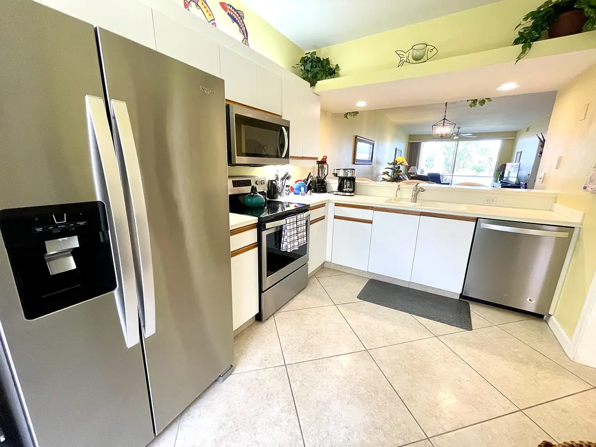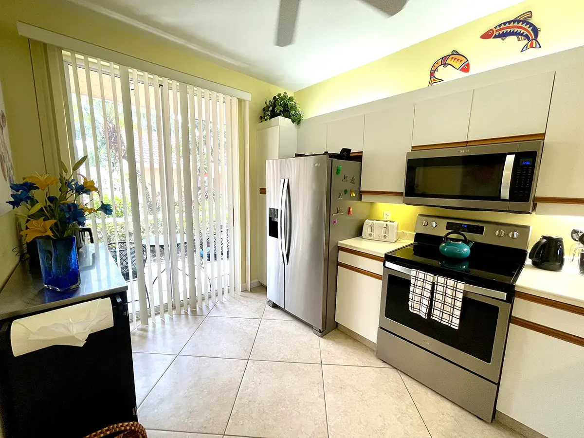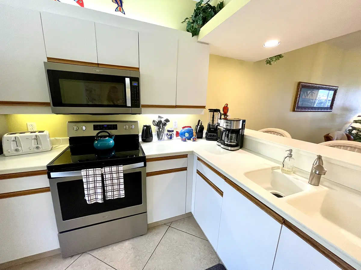 The condo is fully equipped, including a functional kitchen that has everything you need for a comfortable stay. A carport adds extra convenience. You’ll also enjoy the prime location, just a short walk away from one of Florida’s largest resort-style pools.