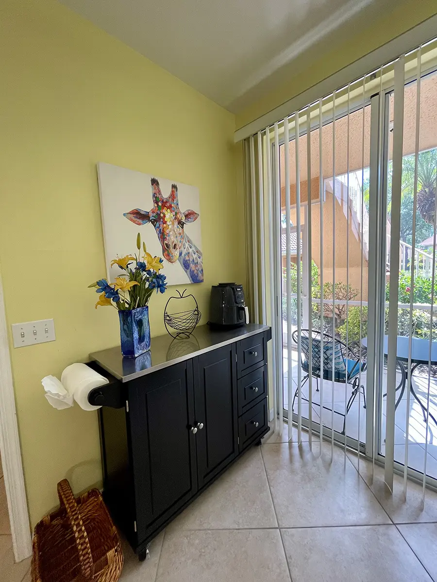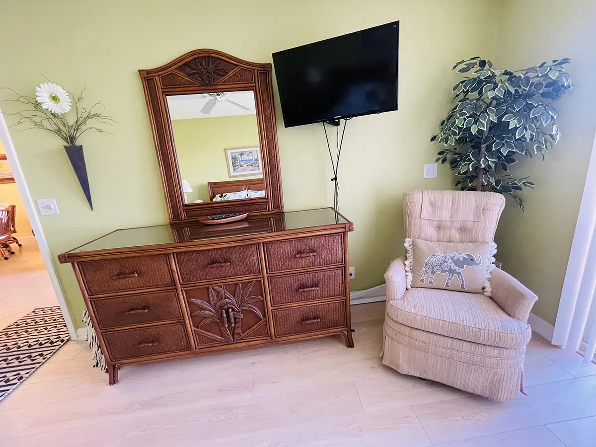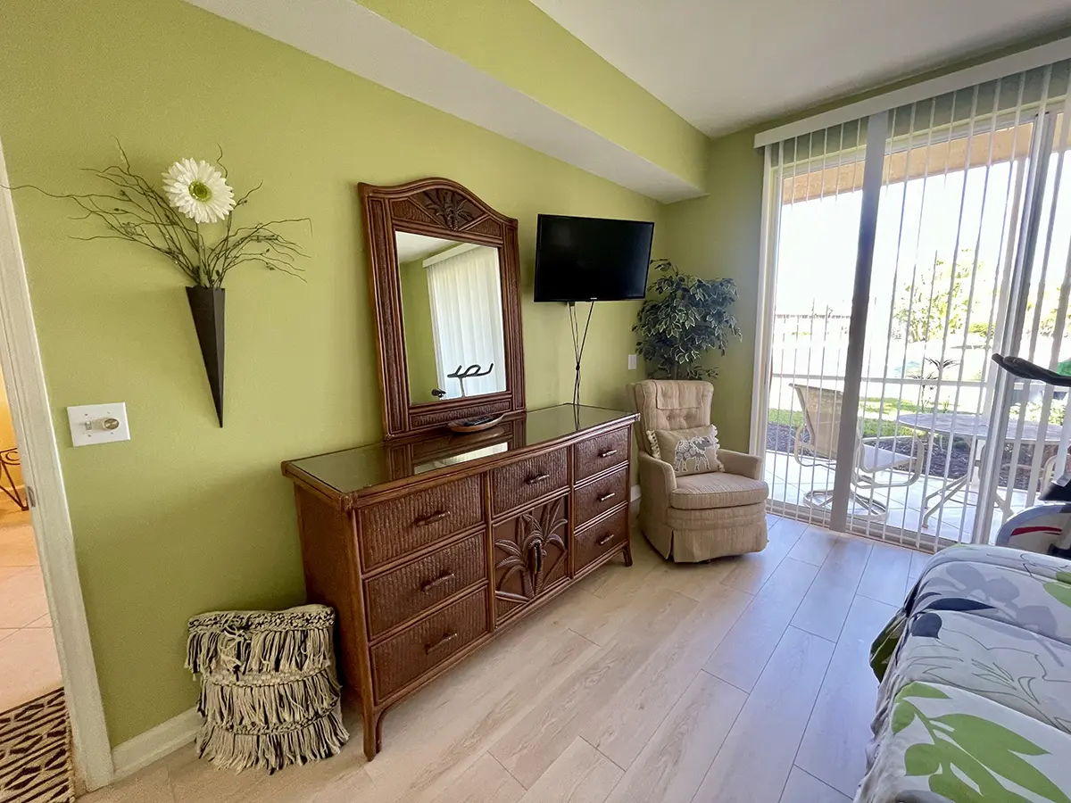 The condo is fully equipped, including a functional kitchen that has everything you need for a comfortable stay. A carport adds extra convenience. You’ll also enjoy the prime location, just a short walk away from one of Florida’s largest resort-style pools.