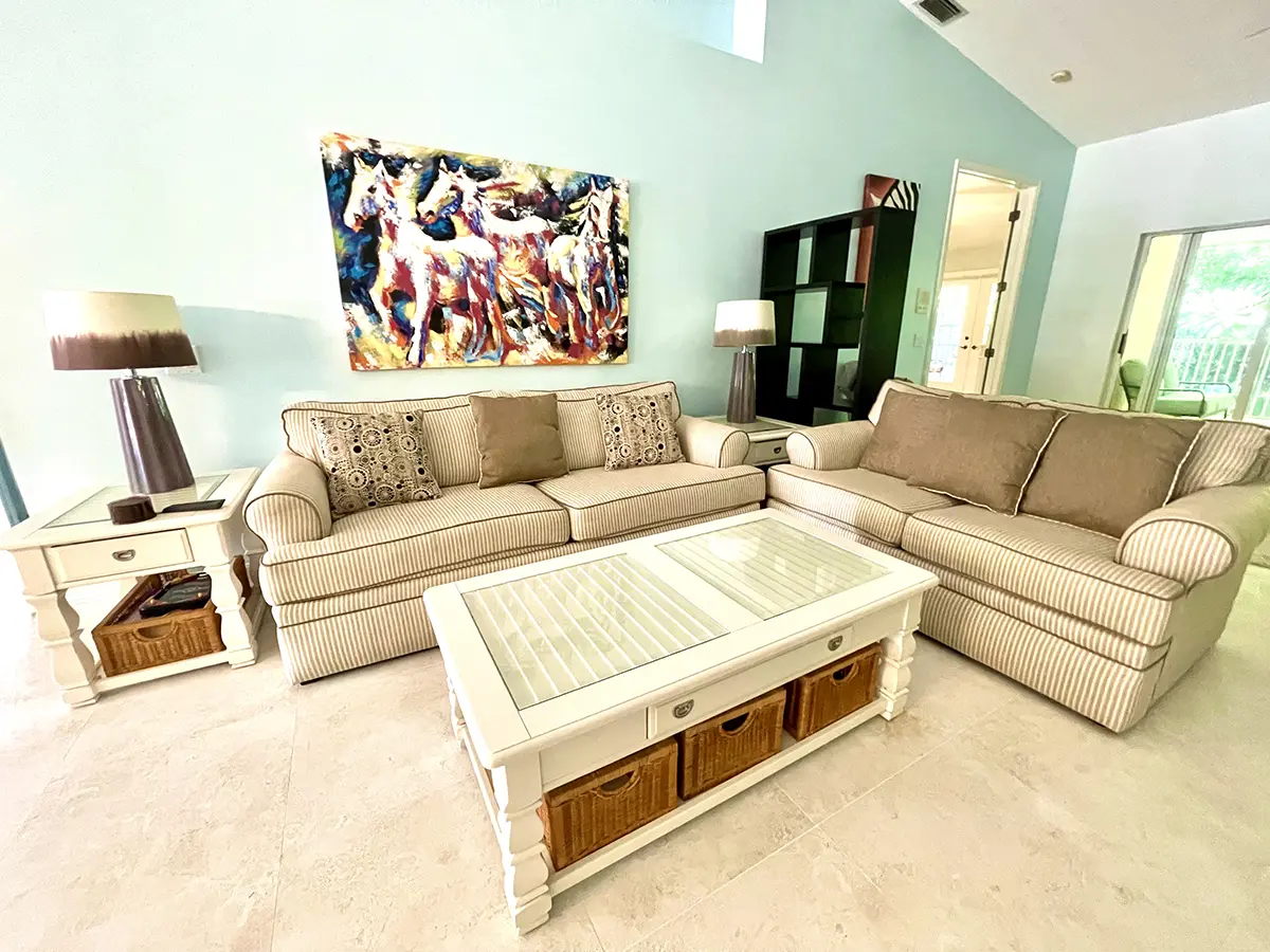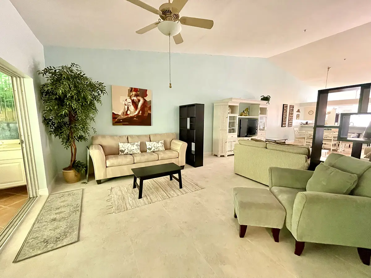 Three beautifully appointed bedrooms and two bathrooms provide plenty of space for family or friends. A private garage adds convenience, while the large resort-style pool is just steps away for swimming and soaking up the Florida sun.